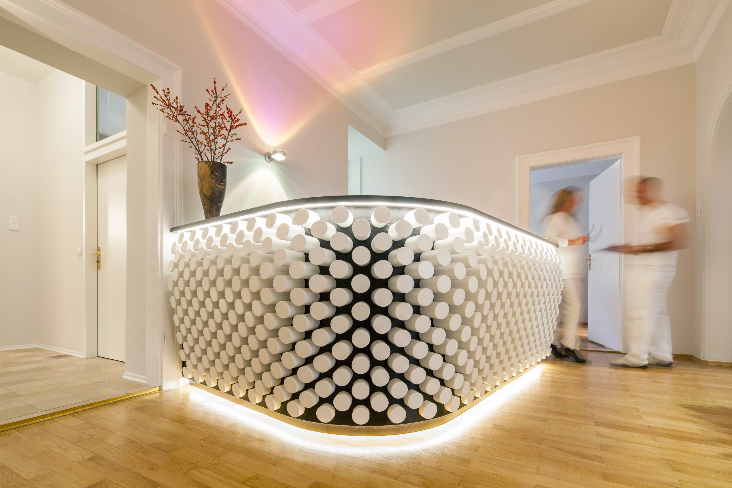 Ein Team aus Spezialisten entwickelt in Zusammenarbeit und Vertrauen die Wünsche und Ziele des Kunden, um einen harmonischen Einklang aus Licht, Akustik und der Ästhetik von Oberflächen zu schaffen, ohne die Funktion der Räume aus dem Fokus zu verlieren.